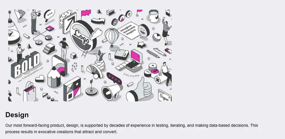 Our most forward-facing product, design, is supported by decades of experience in testing, iterating, and making data-based decisions. This process results in evocative creations that attract and convert.